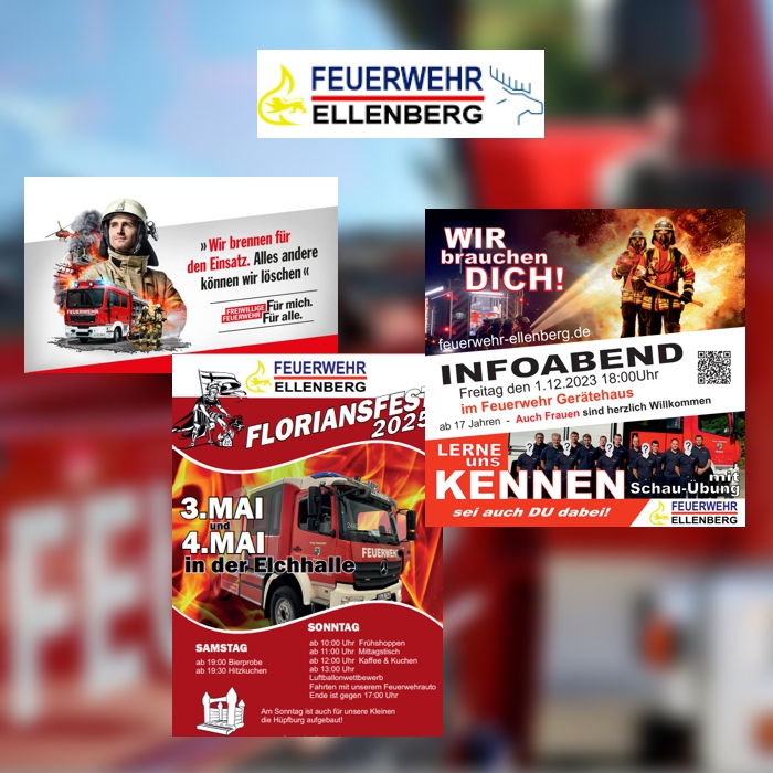 Regelmäßig werden Kampagnen für die Jugendfeuerwehr durchgeführt, um junge Menschen frühzeitig für das Engagement in der Feuerwehr zu begeistern. So bleibt die Feuerwehr Ellenberg langfristig stark aufgestellt – mit einem einheitlichen, modernen und wiedererkennbaren Auftritt.